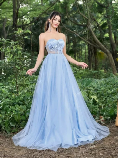 Όμορφο μακρύ φόρεμα κορσέ μαύρο στράπλες 3d floral σέξι, κατάλληλο για γάμους, παράνυμφοι, κομψές βραδιές135.00€