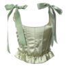 Φορέστε μια ανάλαφρη και ζωηρή εμφάνιση χάρη σε αυτό το πράσινο μπούστο με κορδέλα στο πίσω μέρος που σας επιτρέπει να ρυθμίζετε το σφίξιμο. Μας αρέσουν ιδιαίτερα οι δύο επιβλητικοί φιόγκοι που ενισχύουν την αισθητική αυτού του μπούστου.