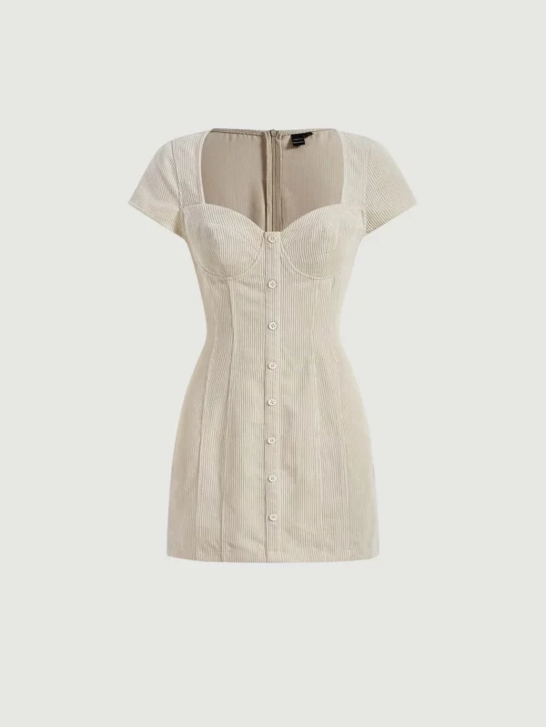 Κομψό και δομημένο, αυτό το χακί φόρεμα κορσέ με ντεκολτέ καρδιάς και κεντρικό κουμπί είναι ιδανικό για μια πινελιά σύγχρονου ρομαντισμού.