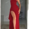 Μονόχρωμο μακρύ φόρεμα με κορσέ μήκος μανικιών: αμάνικο μήκος: μακρύ στράπλες πλισέ φόρεμα παρανύμφου σε μονόχρωμο χρώμα με διαιρούμενο μπροστινό μέρος.